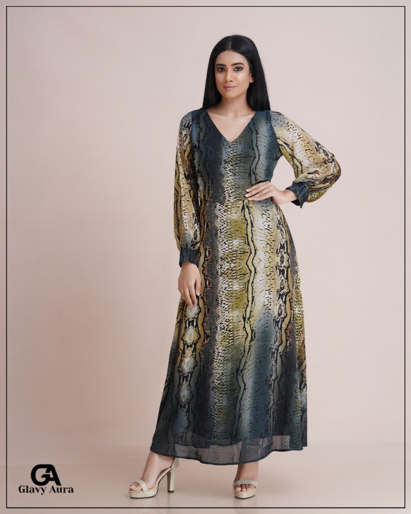 SNAKE PRINT LONG SLEEVE MAXI DRESS