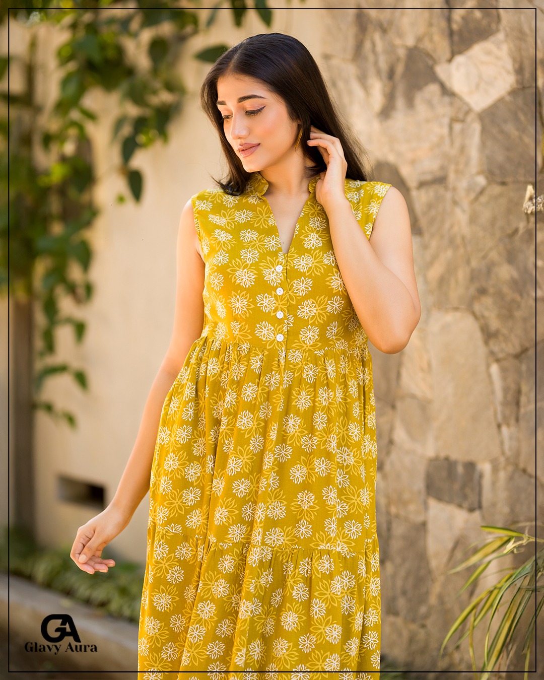 SLEEVELESS SIDE EMBROIDERED LINEN DRESS